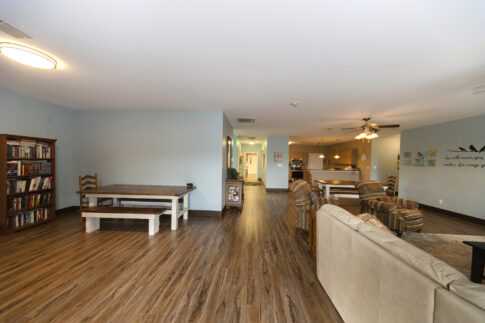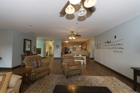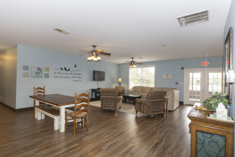 Our shelter can house 8 individual women and 4 families (total of 12 adult women and any number of children). The Marilyn Isaacs House is a 7,000 square foot facility located on 5 acres of beautiful farm land in Madison County.